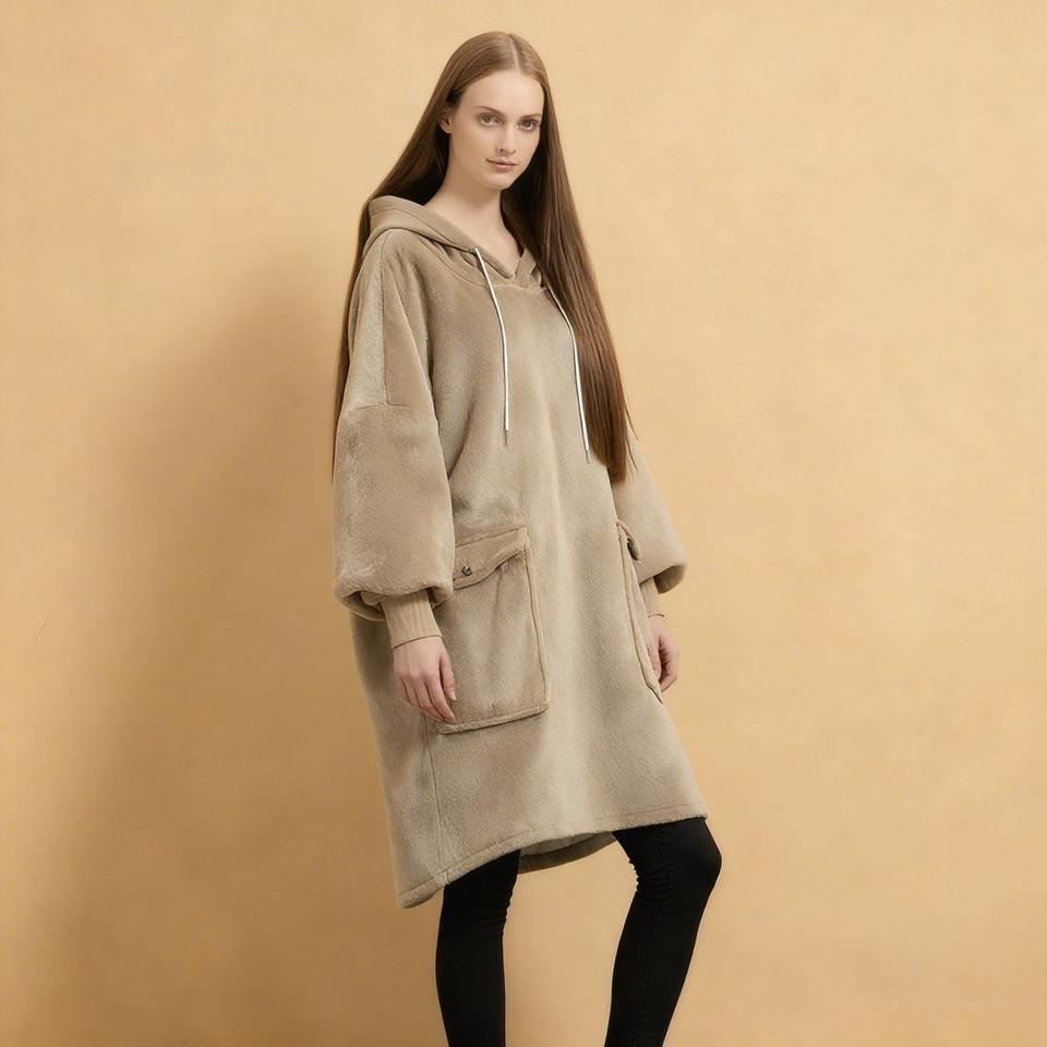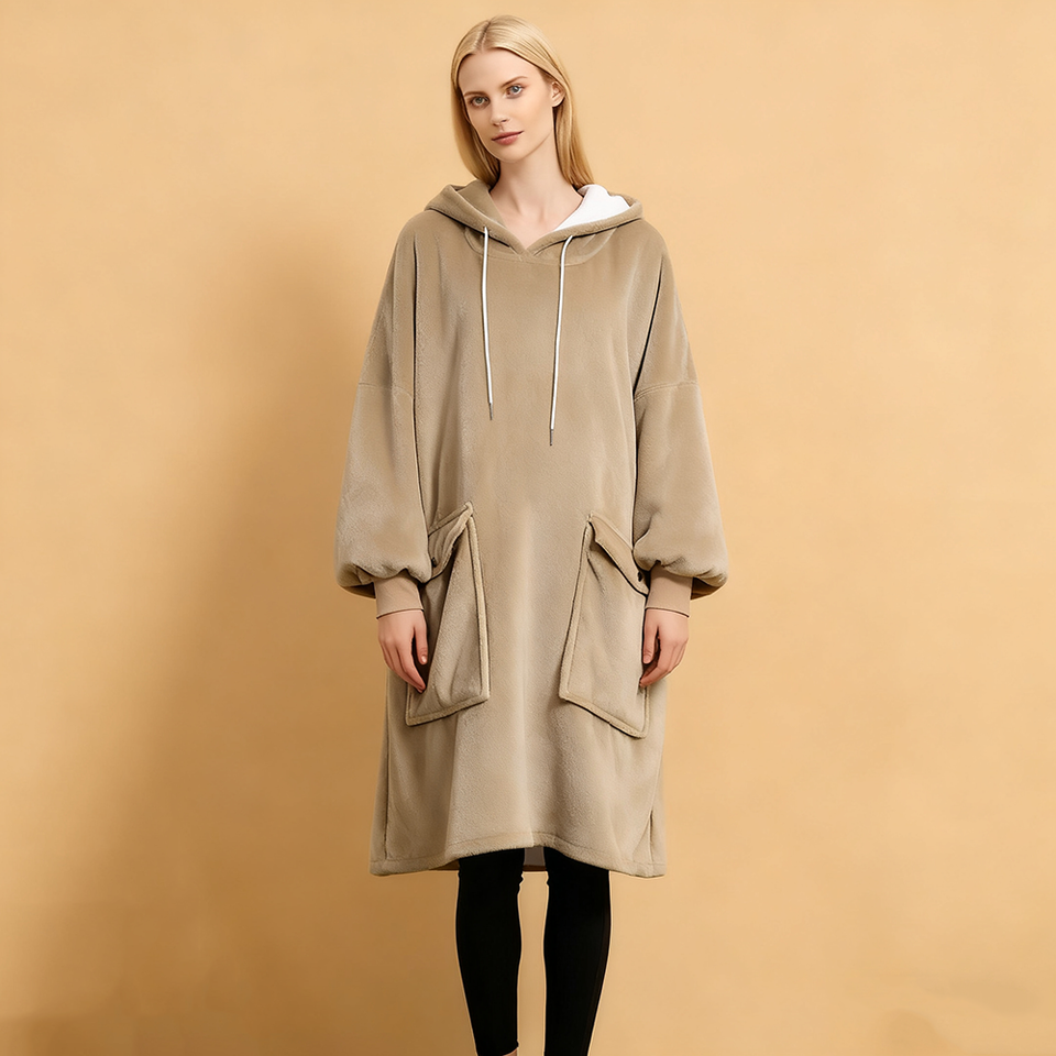 Factory OEM Soft Worm Winter Women Sleepwear Casual Long One Piece Pajamas Tee with Hooded