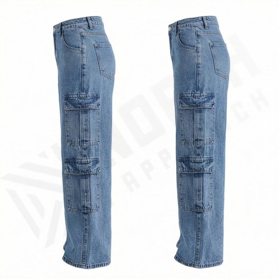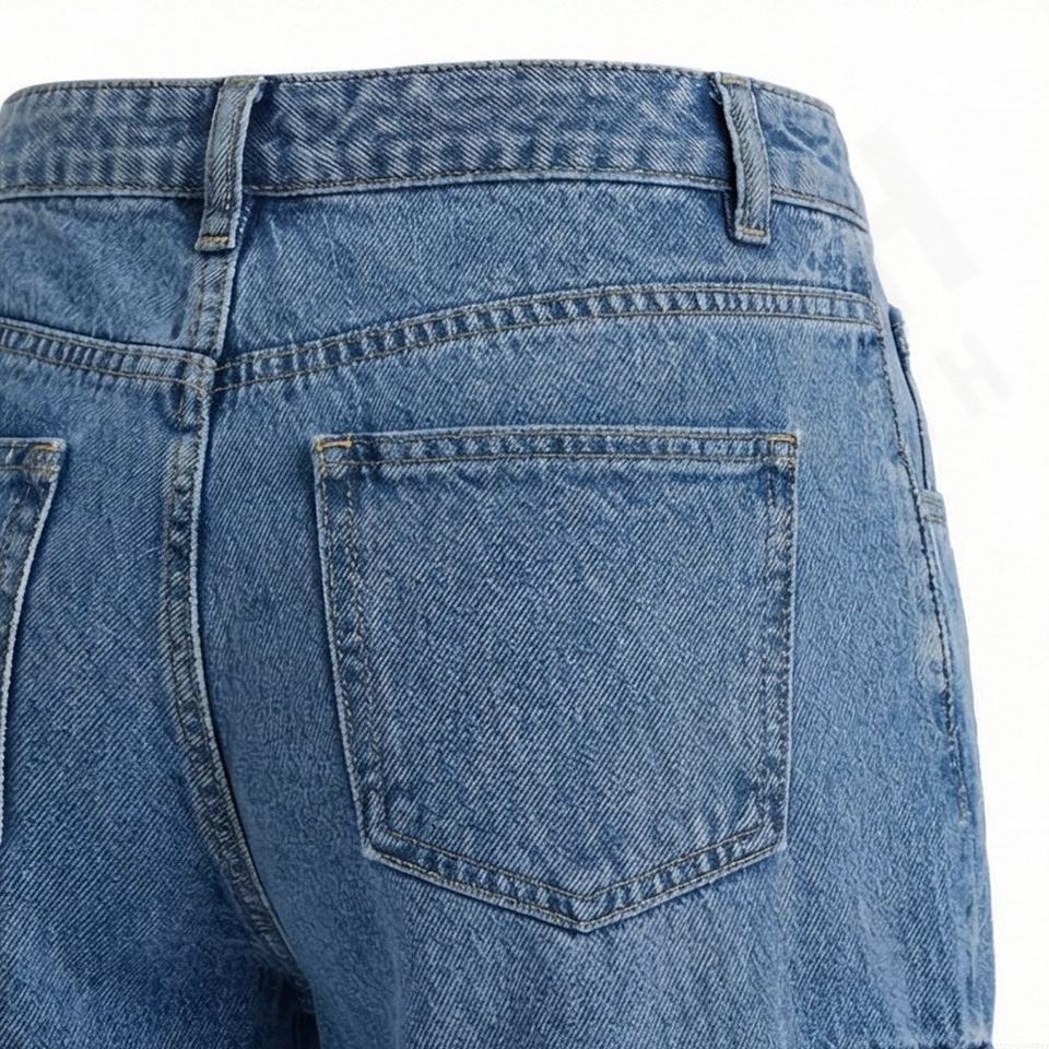 กางเกงยีนส์ทรงตรงแบบคาร์โก้สำหรับผู้หญิง ผลิตโดยโรงงาน (OEM/ODM) แบบสั่งทำพิเศษ ทรงหลวม ขากว้าง ขาดเซอร์ๆ ระบายอากาศได้ดี แห้งเร็ว