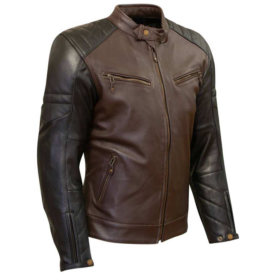 แจ็กเก็ตหนังวัวแท้ไซส์ XL สำหรับมอเตอร์ไซค์ฤดูหนาวคอตั้ง