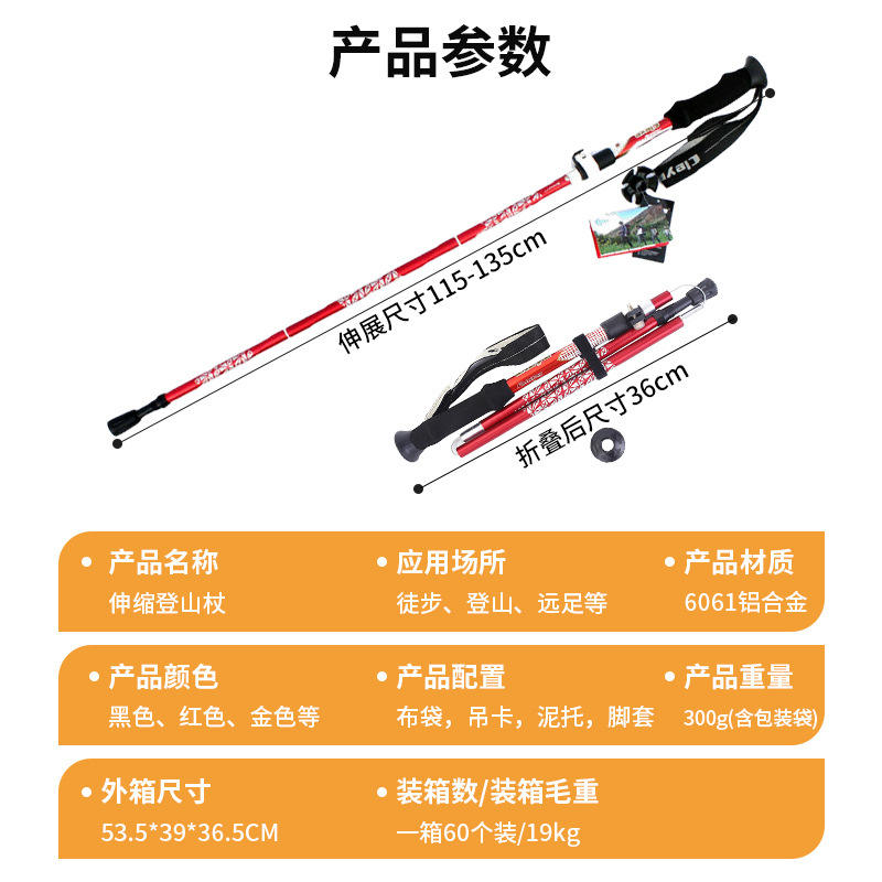 ไม้เท้าเดินป่าสำหรับกิจกรรมกลางแจ้ง ผลิตจากอลูมิเนียมอัลลอย 6061 ปรับความยาวได้ 3 ระดับ พร้อมระบบล็อคเร็วและด้ามจับ EVA