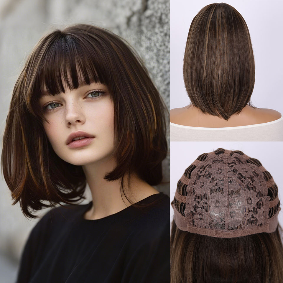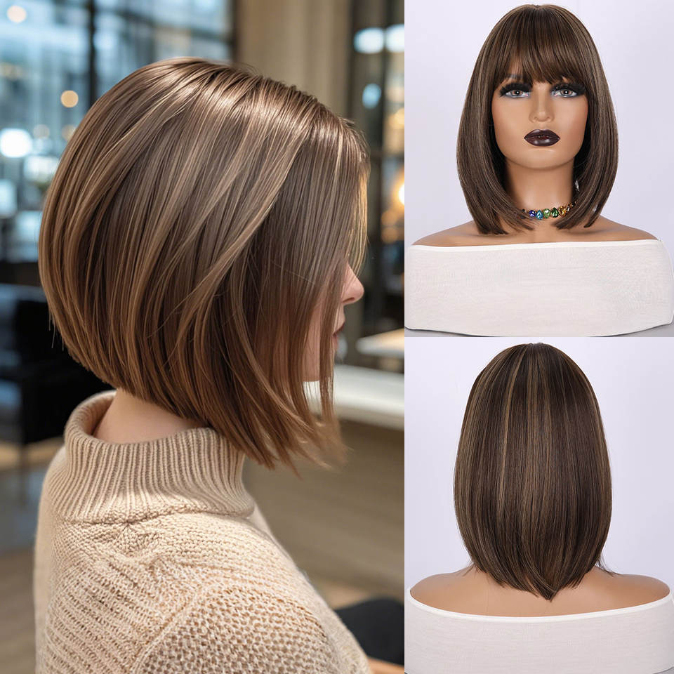วิกผมบ๊อบสั้นตรงแบบไล่สีน้ำตาลอ่อน ทนความร้อน สำหรับสุภาพสตรี-SM7253 จากโรงงาน