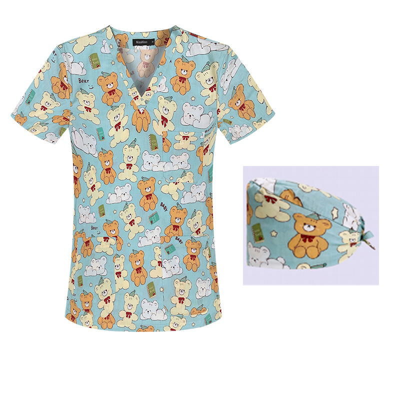 ชุดเครื่องแบบสครับพิมพ์ลายสำหรับทุกเพศเครื่องแบบโรงพยาบาลเสื้อสครับพิมพ์ลายคริสมาสต์และการพยาบาลสนุกตามสั่ง