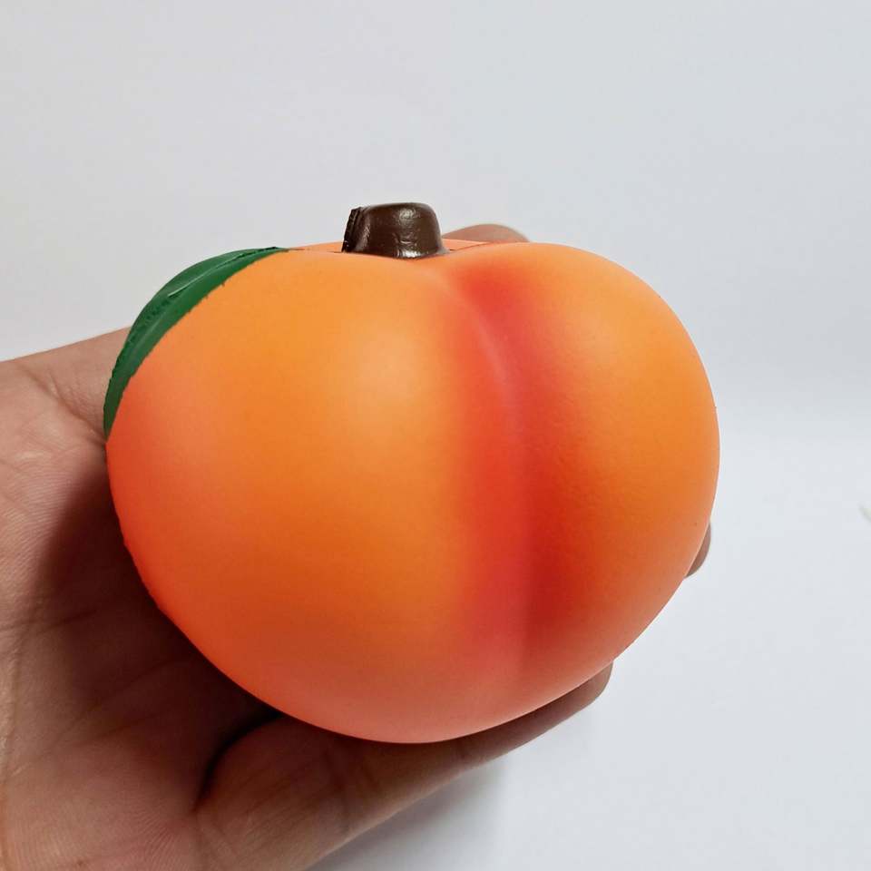 ลูกบอลบีบแก้เครียดรูปทรงลูกพีช พิมพ์โลโก้ได้ตามต้องการ วัสดุ PU นุ่ม บีบได้ บรรเทาความเครียด ของขวัญส่งเสริมการขาย