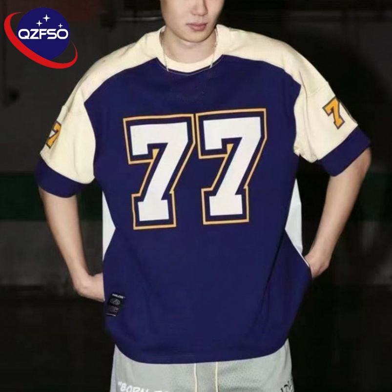 เสื้อยืดแนวสตรีทผ้าโพลีเอสเตอร์สองสีแนววินเทจทรงหลวมโลโก้ออกแบบได้ตามต้องการ