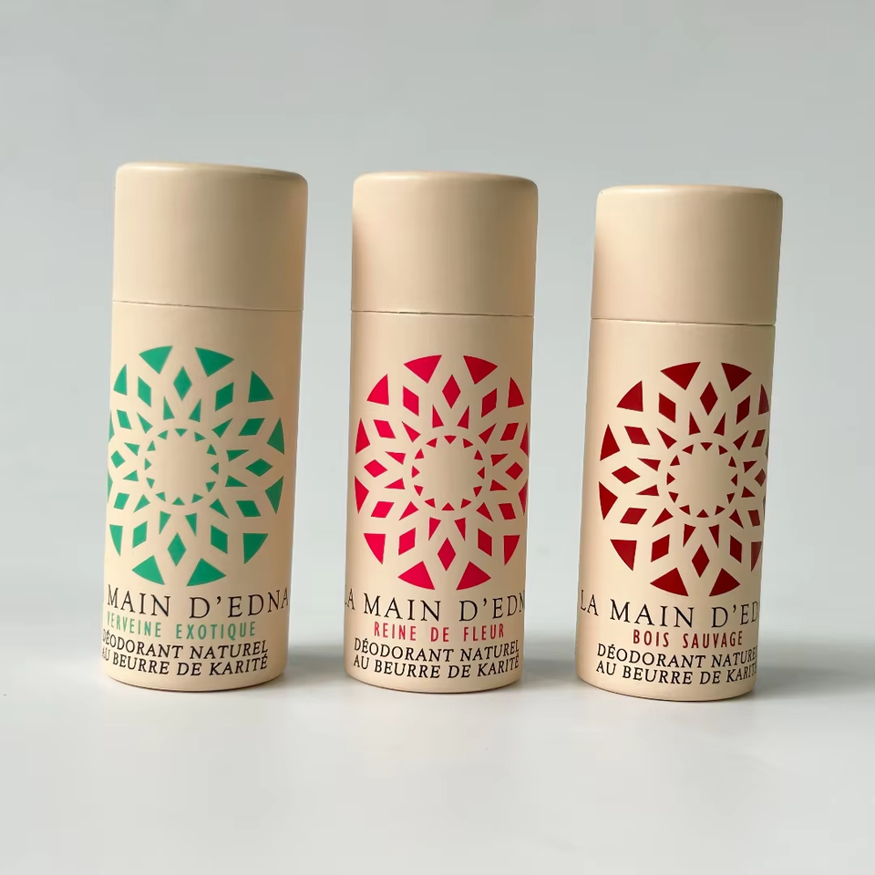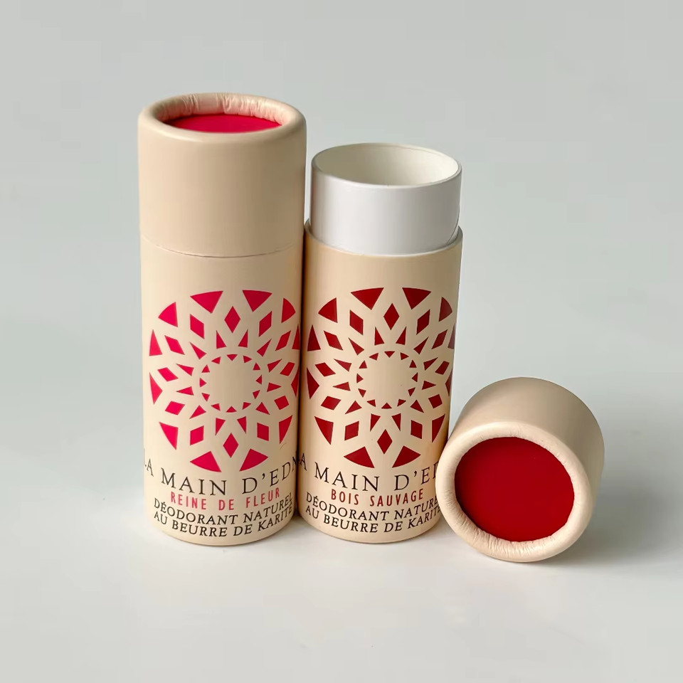 หลอดกระดาษทรงกระบอกทำจากกระดาษแข็งสำหรับระงับกลิ่นกายภาชนะเครื่องสำอางลิปบาล์มแบบย่อยสลายได้100%