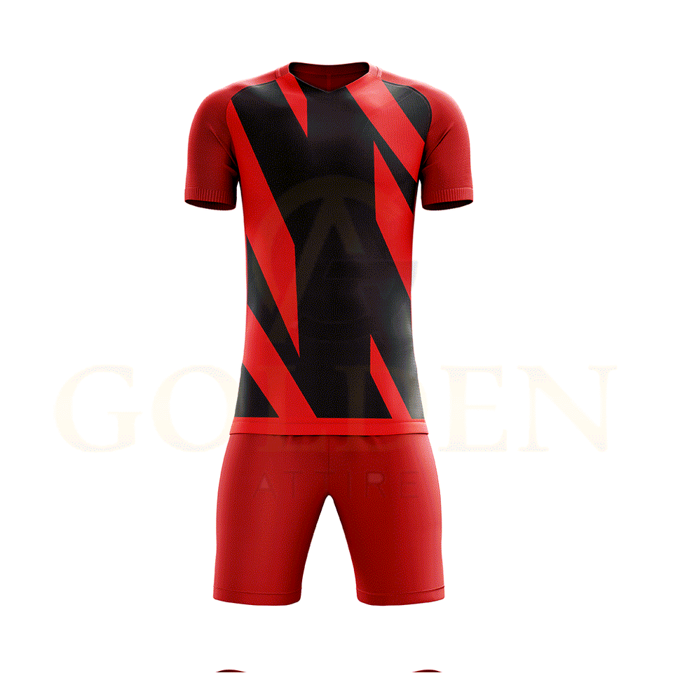 ชุดฟุตบอลผู้ชายผ้าโพลีเอสเตอร์ระบายอากาศ 100% ราคาโรงงาน เสื้อยืดคอวีสำหรับฤดูร้อน ดีไซน์คอเสื้อแบบซับลิเมชั่นที่เป็นเอกลักษณ์
