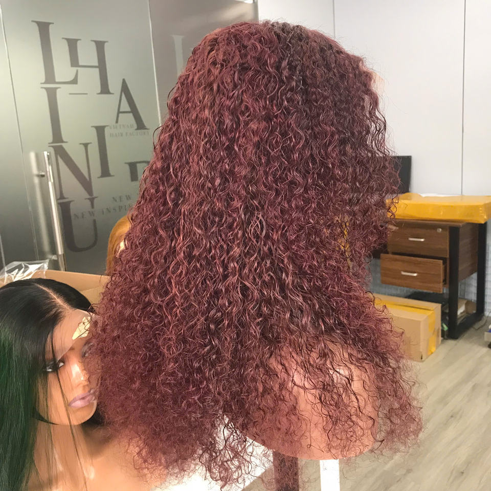 วิกผมคนแท้บริสุทธิ์จากเวียดนามวิกผม100% เบอร์กันดีแบบชาวพม่ามีสีเบอร์กันดี