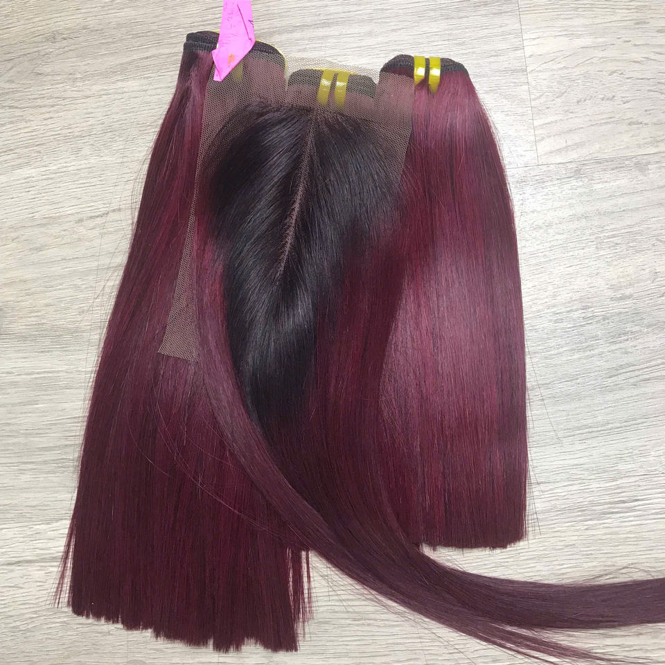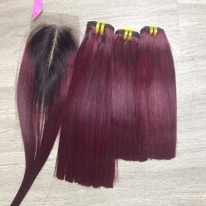 Factory Price 100% Raw Virgin Vietnamese Human Weft Lace Bone Straight Ombre Burgundy Color Super Double Drawn Hair Extensions