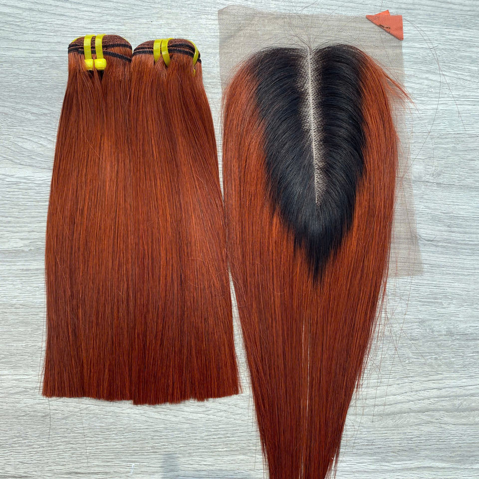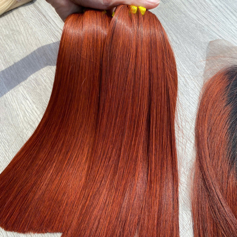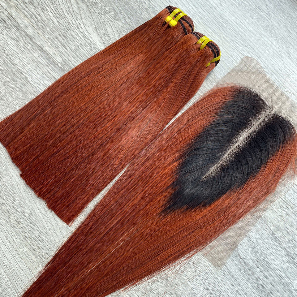 วิกผมลูกไม้แท้แบบชาวเวียดนามสำหรับต่อผมแบบ100% สีน้ำตาลออมเบรสีน้ำตาลเข้ม