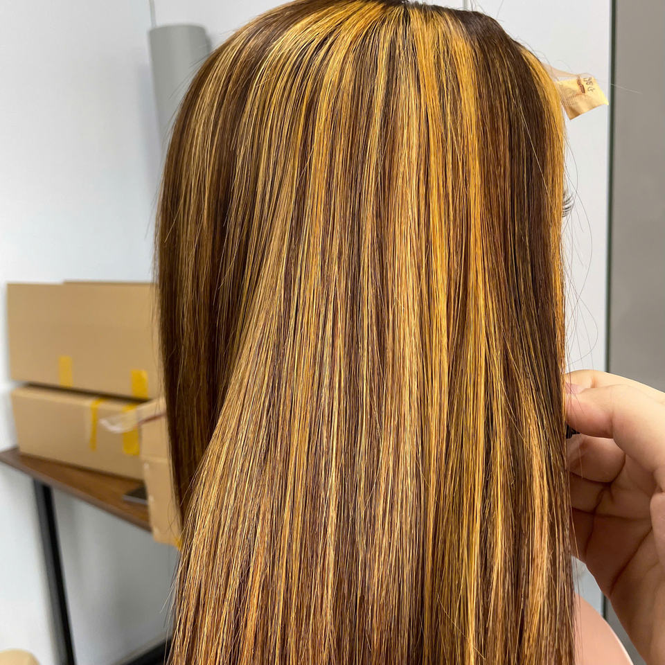 วิกผมลูกไม้ดิบบริสุทธิ์แบบชาวเวียดนาม100% ผมตรงติดโครงเปียโนสีเหลืองแบบคู่