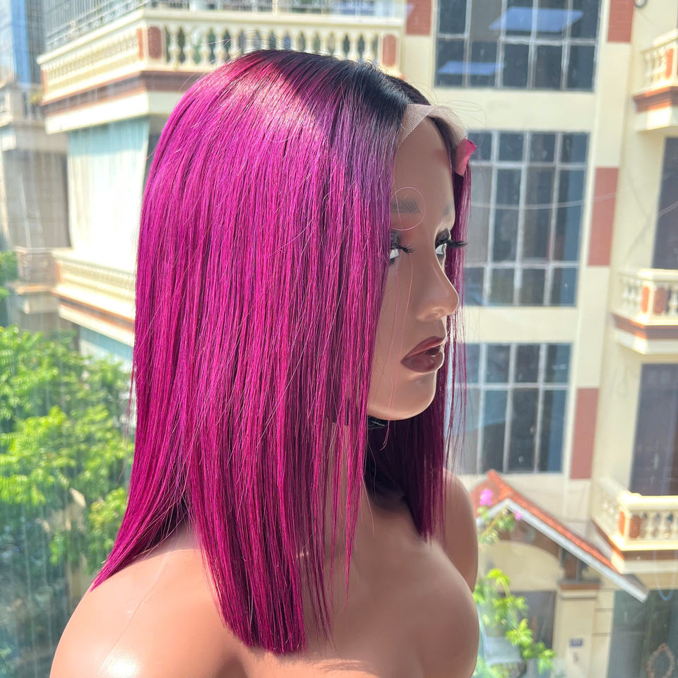 วิกผมลูกไม้แท้แบบชาวเวียดนาม100% สำหรับต่อผมแบบตรงไล่เฉดสีม่วงเข้มสองชั้น
