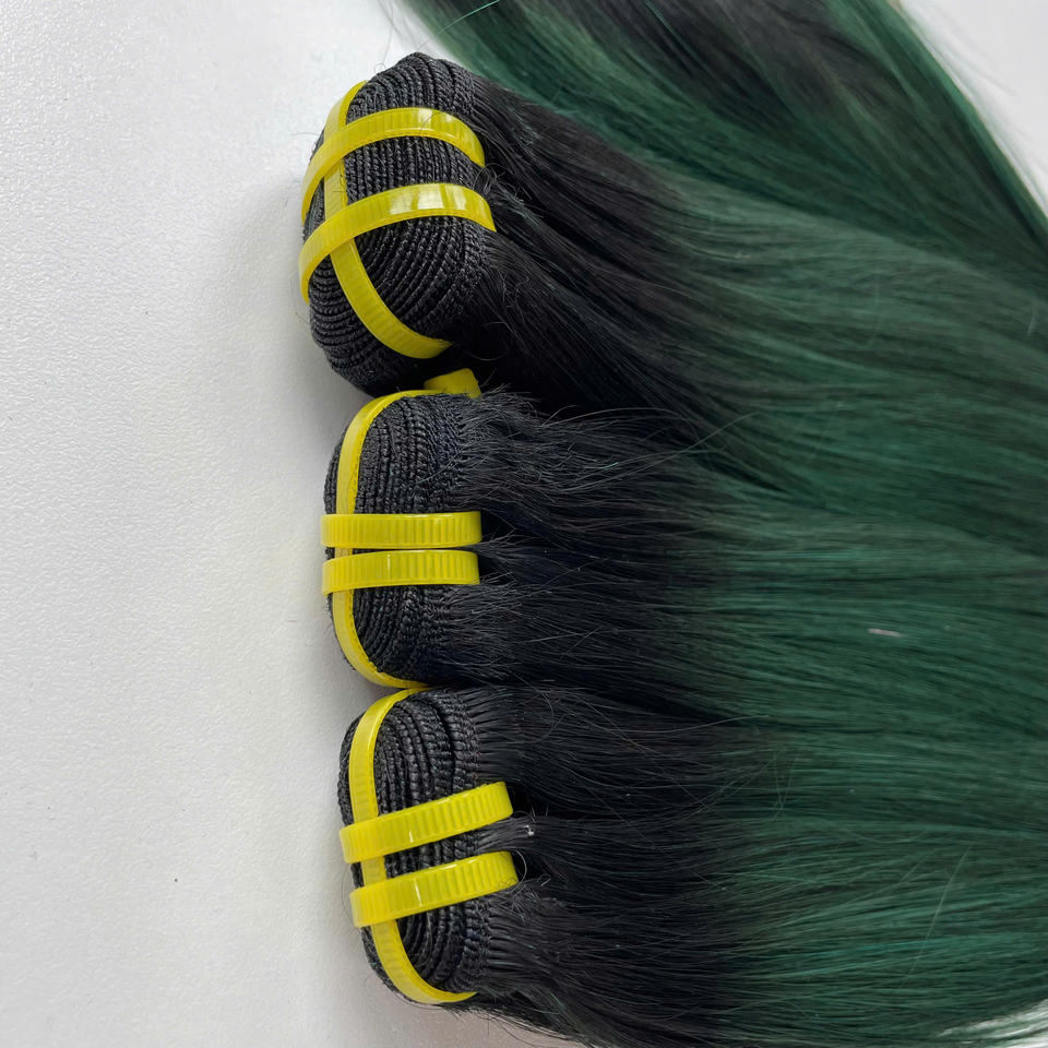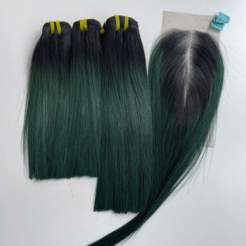 วิกผมลูกไม้แท้แบบชาวเวียดนามสำหรับต่อแบบ100% ผมตรงแบบมีสองสีเขียวไล่เฉดสี