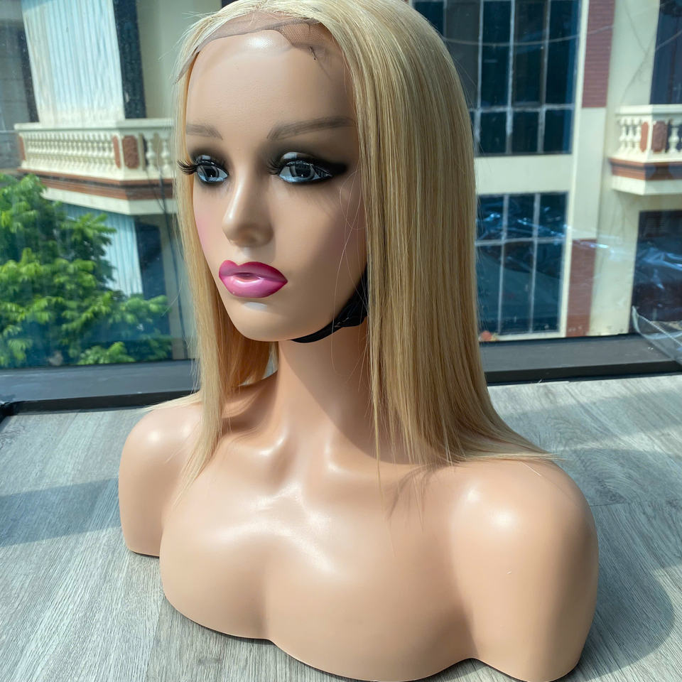 ผมต่อแบบตรงสุดๆสีบลอนด์อ่อนถักลายลูกไม้ของมนุษย์บริสุทธิ์จากเวียดนาม