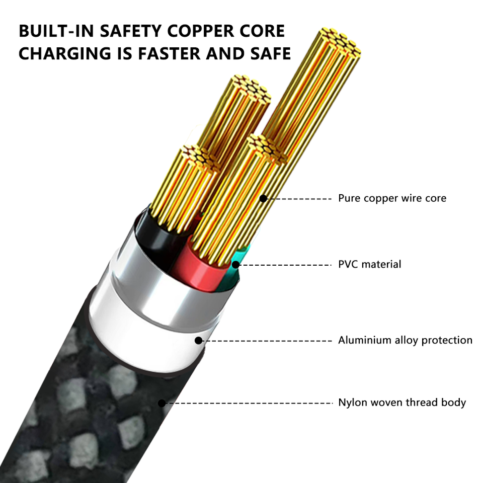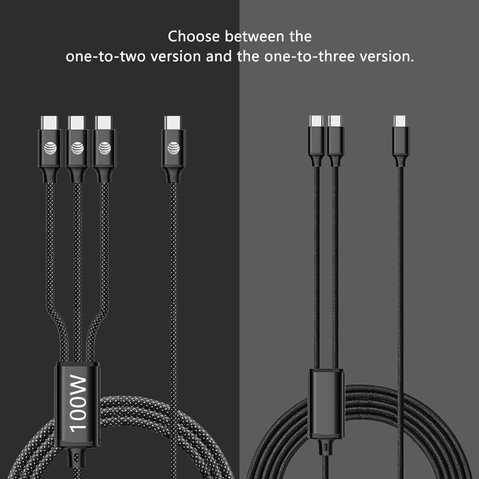 ราคาโรงงาน สายชาร์จเร็ว 100W สายถักไนลอนยาว 1 เมตร ป้องกันสัญญาณรบกวน สาย USB 2.0 ตัวนำทองแดงแท้ สาย USB 3 in 1 แบบ C
