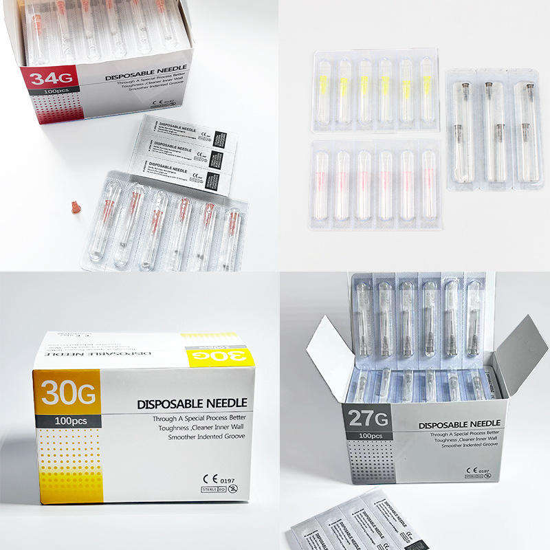 เข็มขนาดเล็กพิเศษไม่เจ็บปวดสำหรับฟันและเปลือกตา100ชิ้น/กล่อง18กรัม23กรัม25กรัม27กรัม29กรัม30กรัม31กรัม32กรัม34กรัม