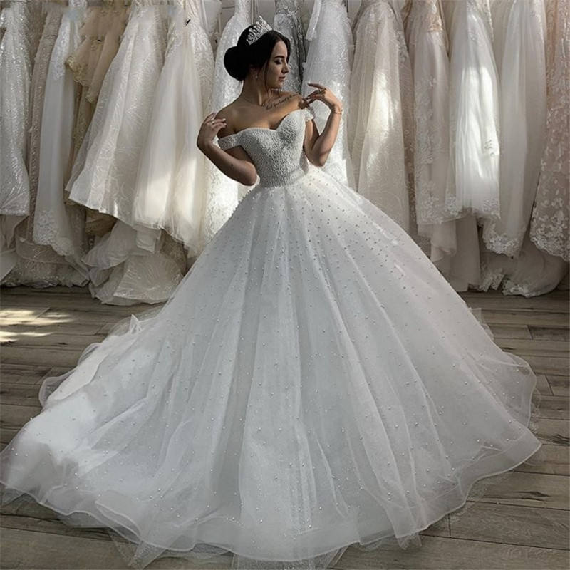 Factory Price 2025 New Beading Fashion Vestido De Noiva Bridal Gown Women Long Tail Wedding Dress