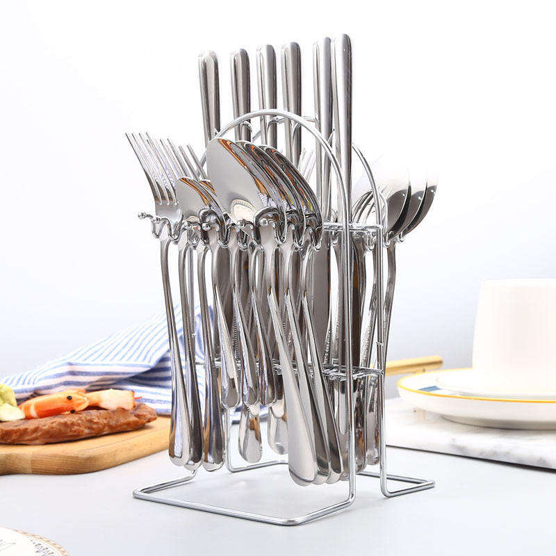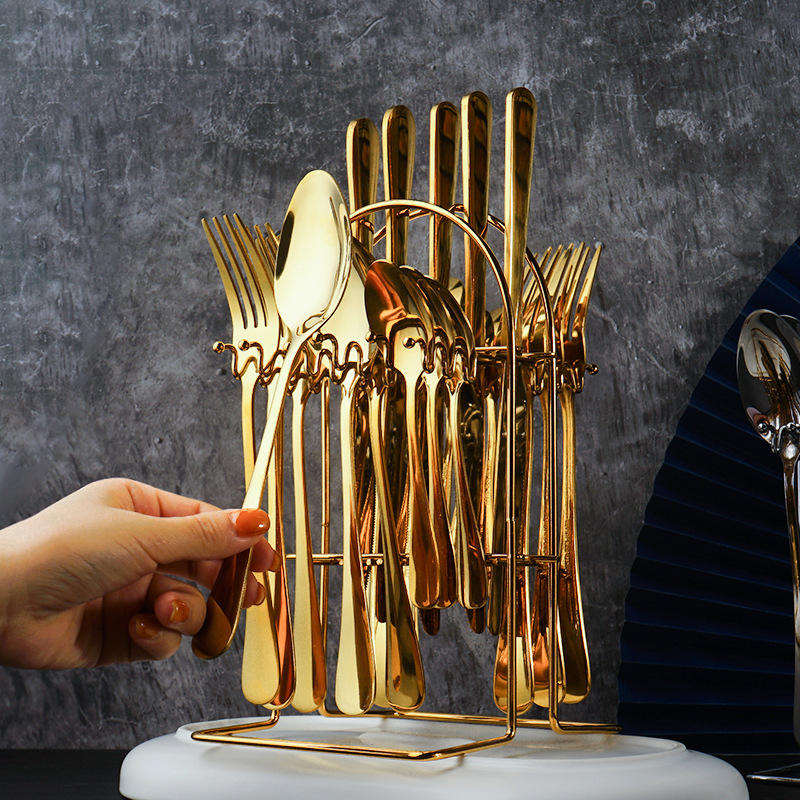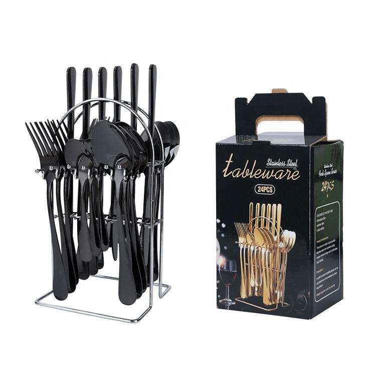 ชุดช้อนส้อมเครื่องเงินชุดหรูหราพร้อมที่ยึดบล็อกแม่เหล็ก24ชิ้นช้อนของขวัญช้อนสแตนเลสใช้ในบ้าน