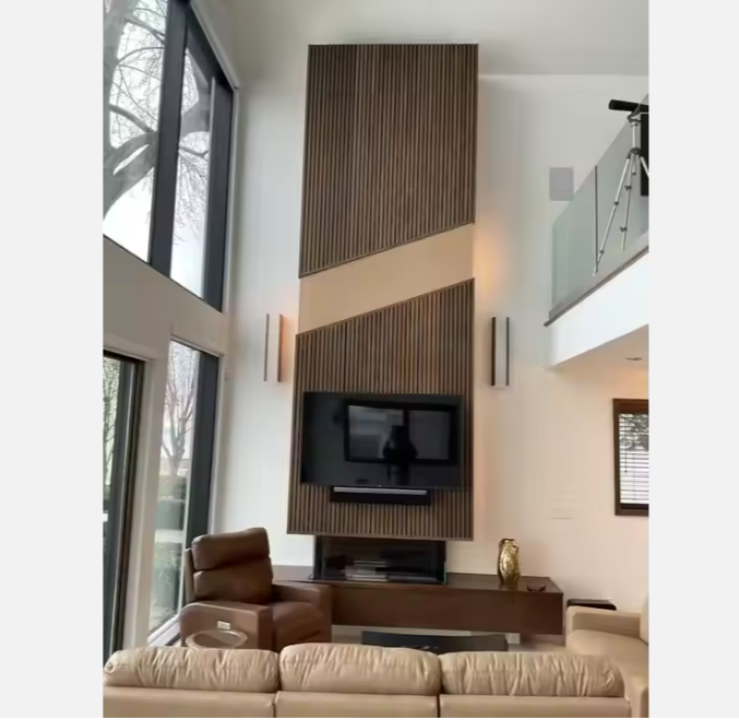 ราคาโรงงาน แผ่นผนังลายลูกฟูกเคลือบ PVC แบบ WPC พร้อมเอฟเฟกต์แสงดาว 3 มิติ สำหรับตกแต่งภายใน ฉากหลังทีวี และแผ่นซับเสียง