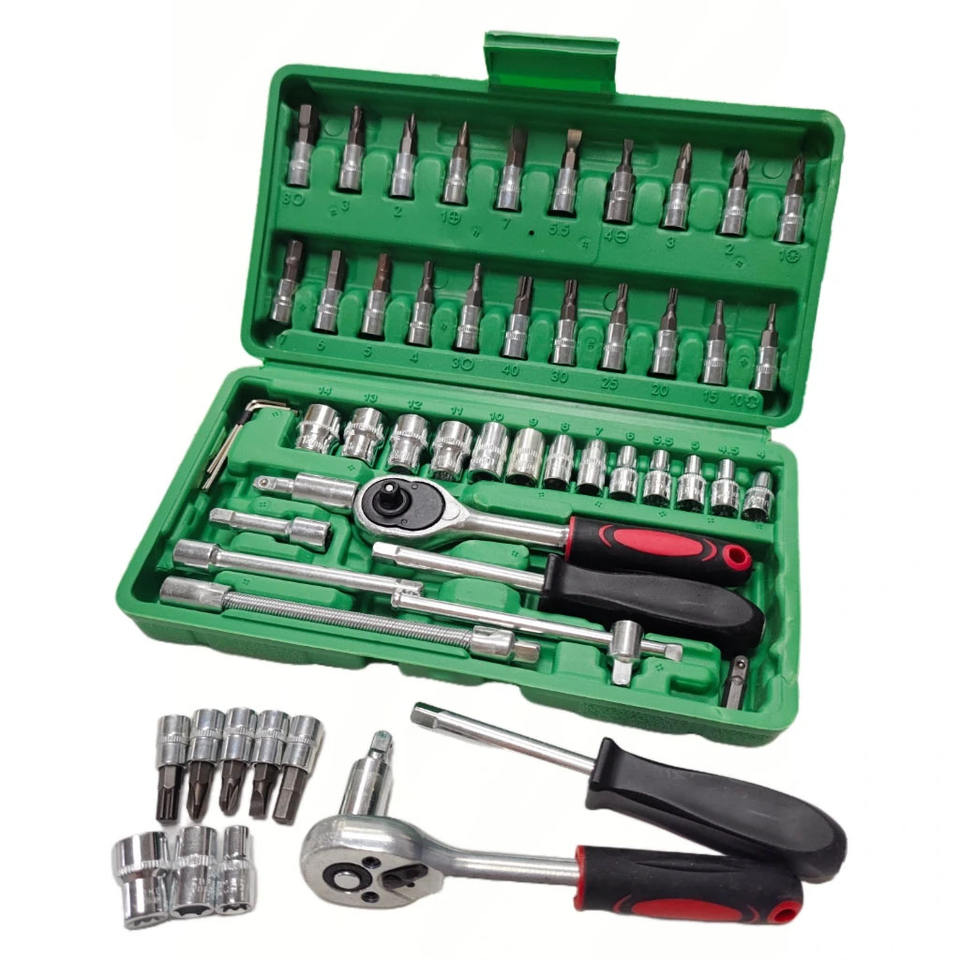 ชุดเครื่องมือซ่อมแซมเครื่องยนต์ 46 ชิ้น ราคาโรงงาน พร้อมประแจวงล้อและกล่องซ็อกเก็ต สำหรับซ่อมบำรุงรถยนต์