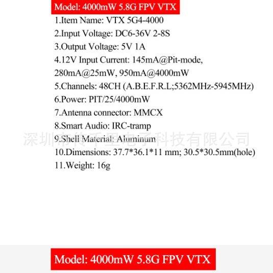 5.8G 4W VTX BlackSpecification