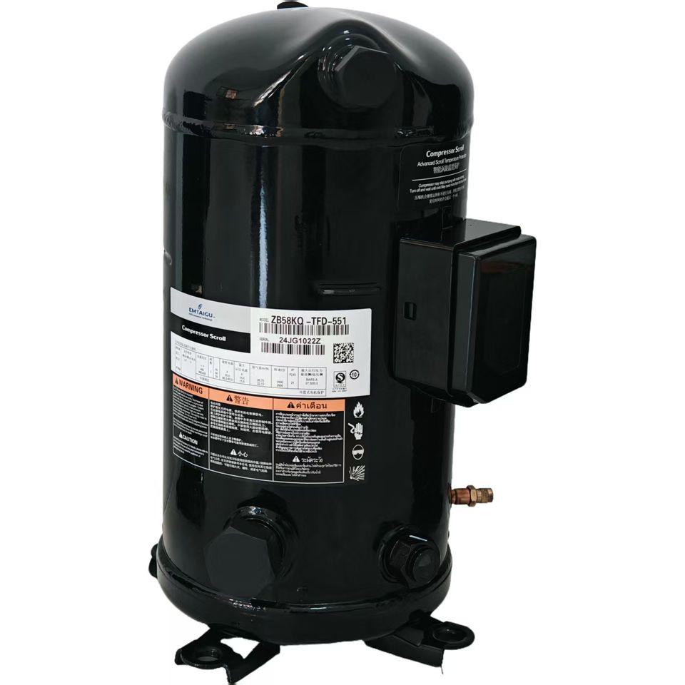 ราคาโรงงาน คอมเพรสเซอร์แบบสกรอลล์สำหรับเครื่องแช่แข็งแบบแผ่น 5 แรงม้า คุณภาพสูง พร้อมมอเตอร์และลูกปืน ประสิทธิภาพสูง ปรับแรงดันไฟฟ้าได้ตามต้องการ