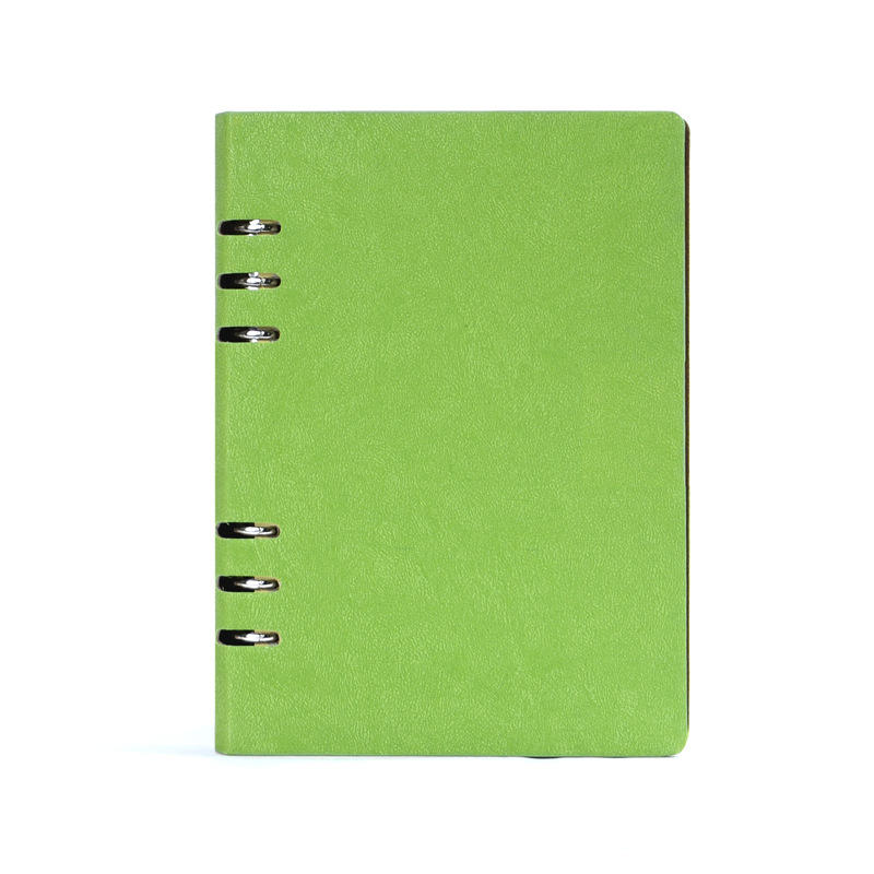 ราคาโรงงาน 6 หลุมที่กําหนดเองแหวน Binder สมุดบันทึกหลวม B5 สมุดบันทึกปกหนัง PU สีเขียว