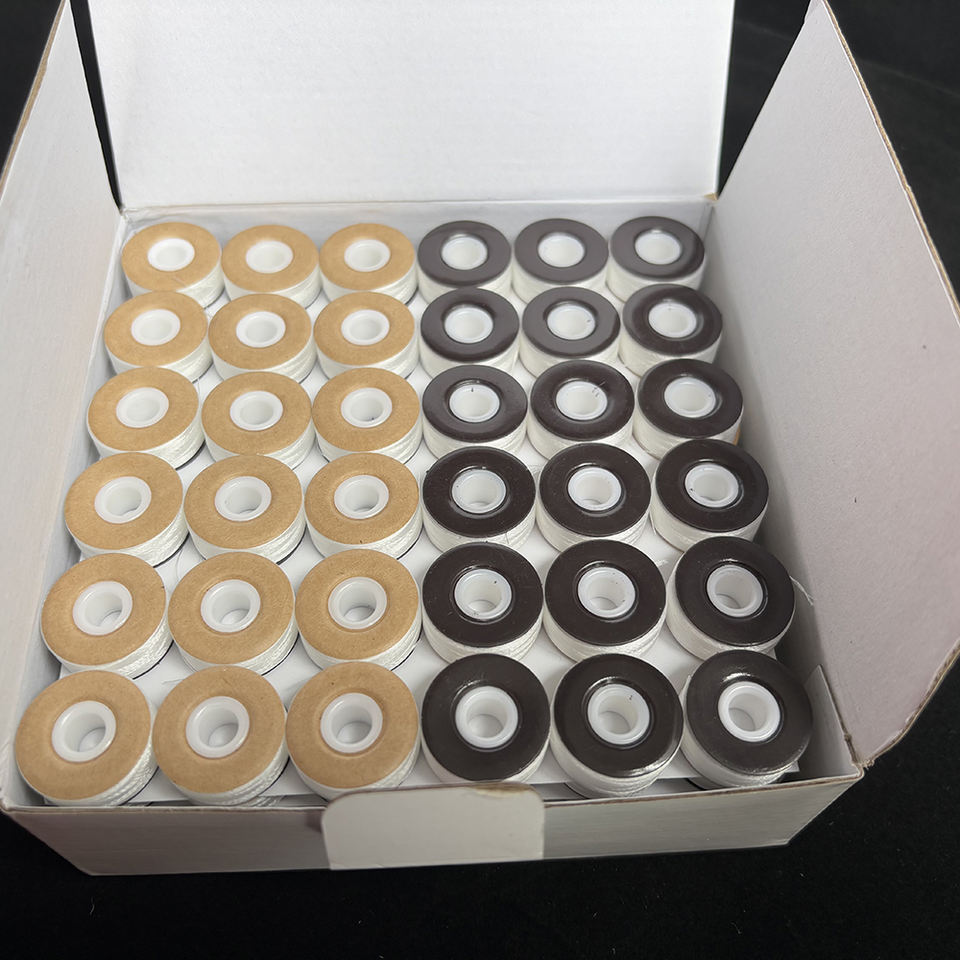 กระสวยด้ายด้านล่างสีขาว70D สำหรับเครื่องปักผ้าโพลีเอสเตอร์60wt มีสนามแม่เหล็กสีขาวรูปตัวแอล