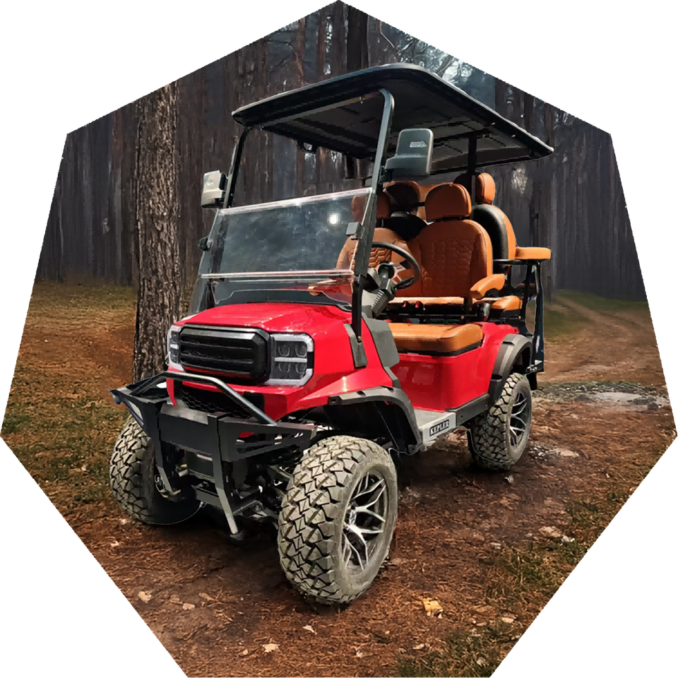 รถกอล์ฟสำหรับล่าสัตว์ไฟฟ้า2 + 2ที่นั่งถูกกฎหมายแบตเตอรี่ลิเธียมและตะกั่วกรด7500วัตต์
