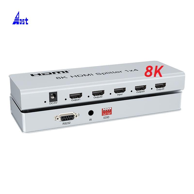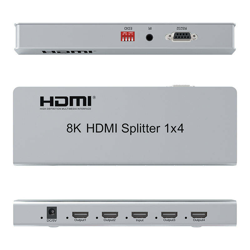 ตัวแยกสัญญาณ HDMI แบบ4K 120Hz 8K 60Hz 1x4 7680x432 0/60Hz ตัวแยก HDMI 1 in 4 OUT พร้อม RS232 IR EDID