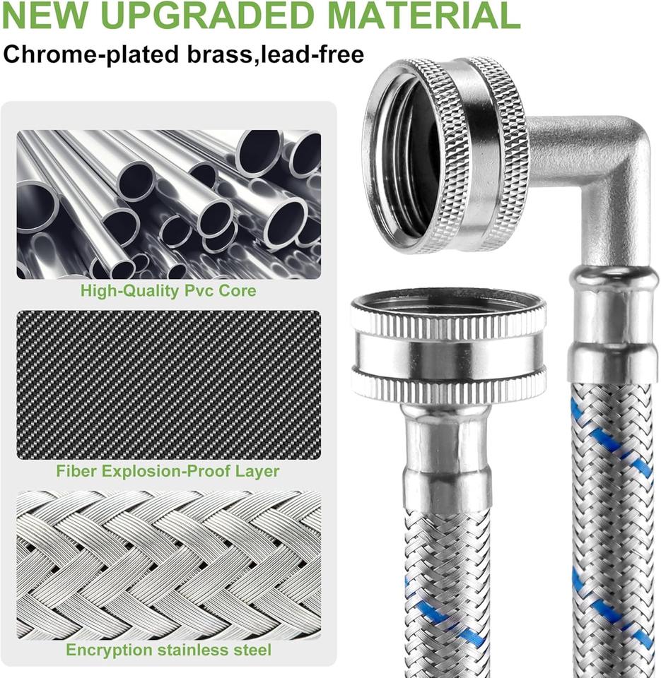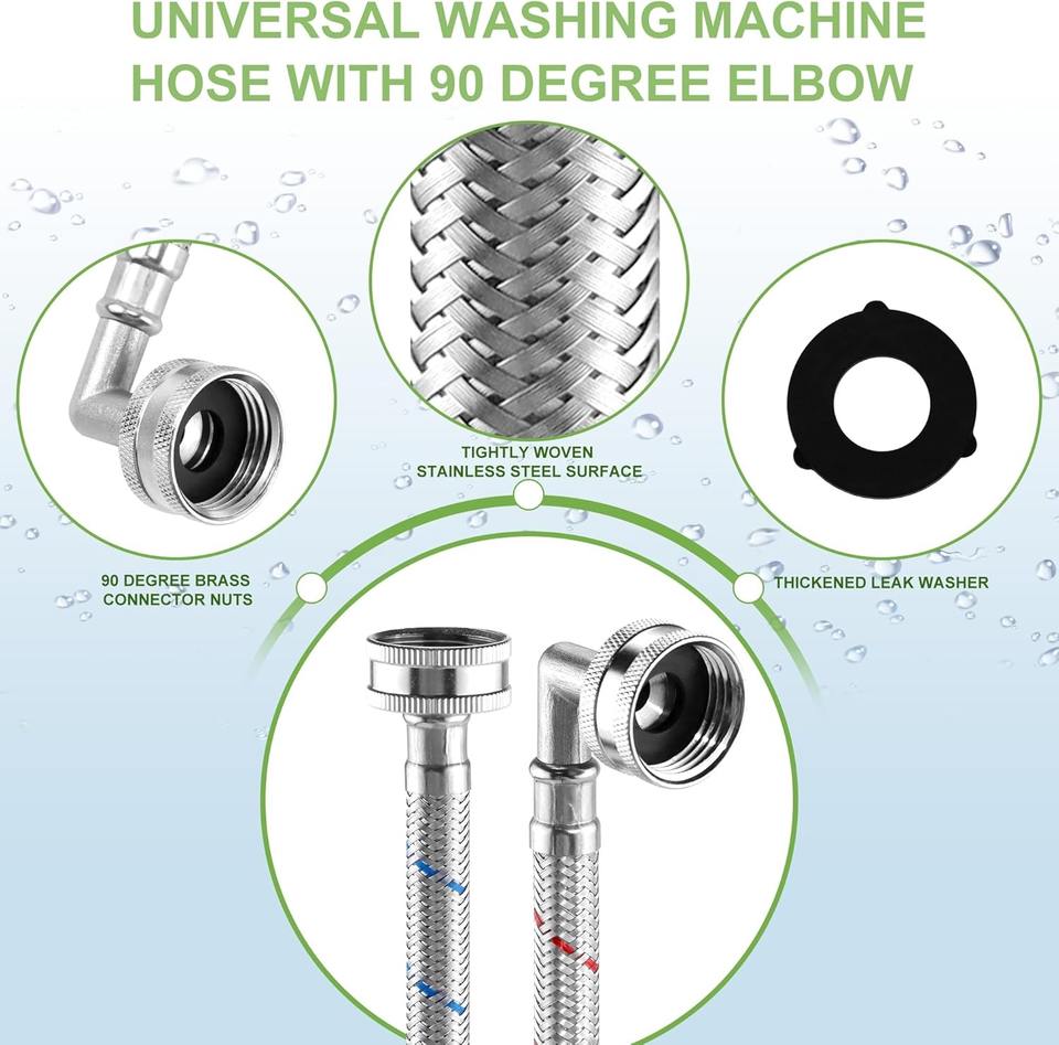 ความยาว 6 ฟุต: ให้ความยาวเพียงพอสำหรับการติดตั้งได้ง่ายและยืดหยุ่นในการเชื่อมต่อเครื่องซักผ้ากับแหล่งน้ำ