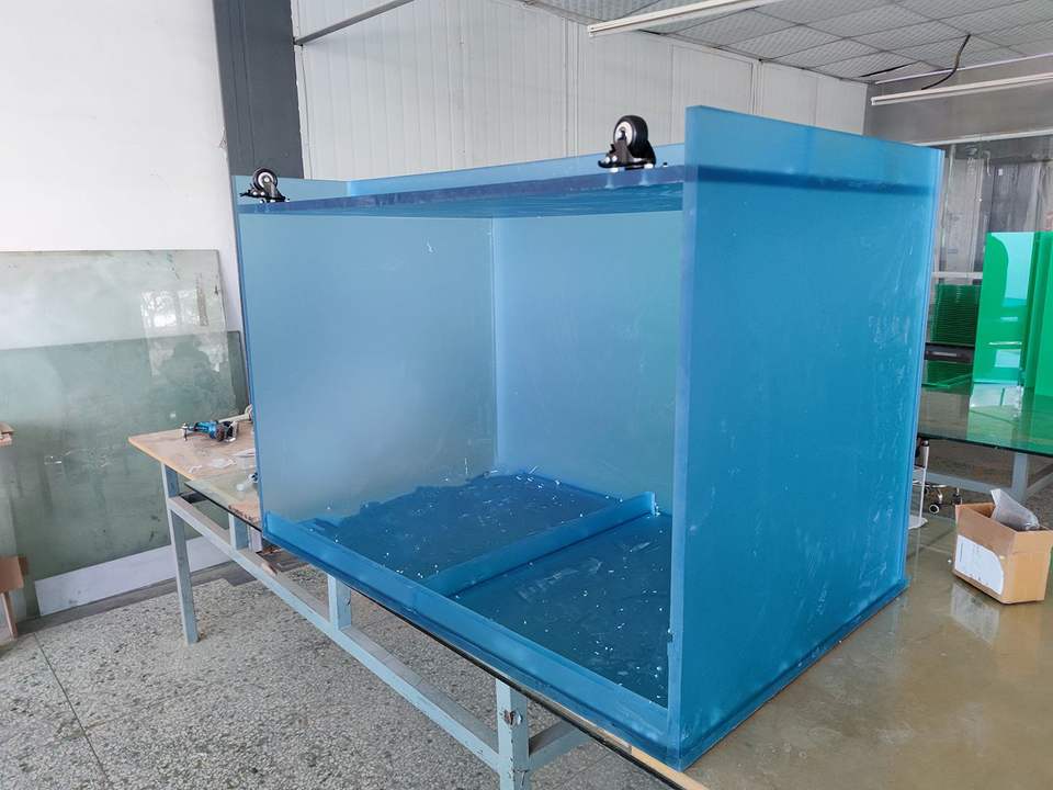 ตู้โชว์อะคริลิคแบบฝ้าถังเก็บน้ำแก้วสีฟ้าไล่ระดับสีสำหรับวางโชว์ขนาดใหญ่