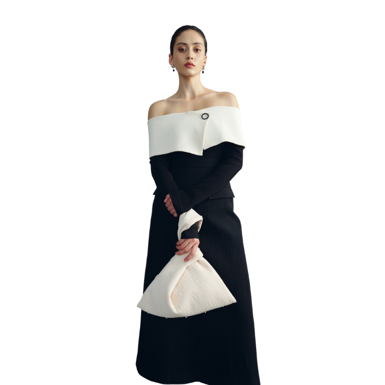 กระโปรงยาวสีดำมีกระเป๋าสองช่องกระโปรงแมกซี่เสื้อเจอร์ซี่ผ้าถักลายนูนเสื้อผ้าผู้หญิงออนไลน์ช้อปปิ้ง