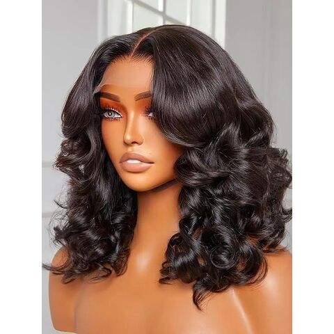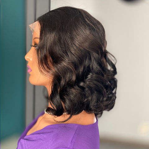 วิกผมหยิกสั้นผมคนบราซิลลูกไม้13x4วิกผมหยิกหยักศกผมสั้นผมตรงที่เกิดมา