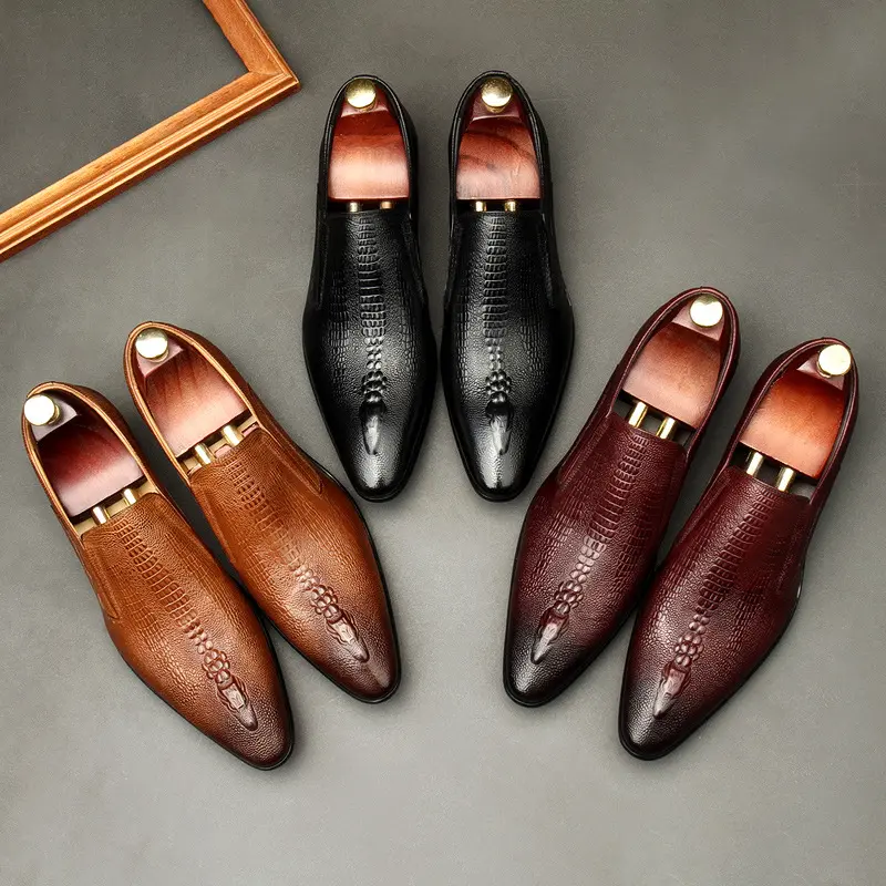 Factory Price Breathable Alligator Pointed Leather Shoes Business Formal Men's Foot Summer British Fashion