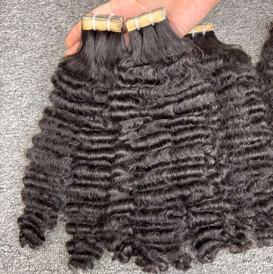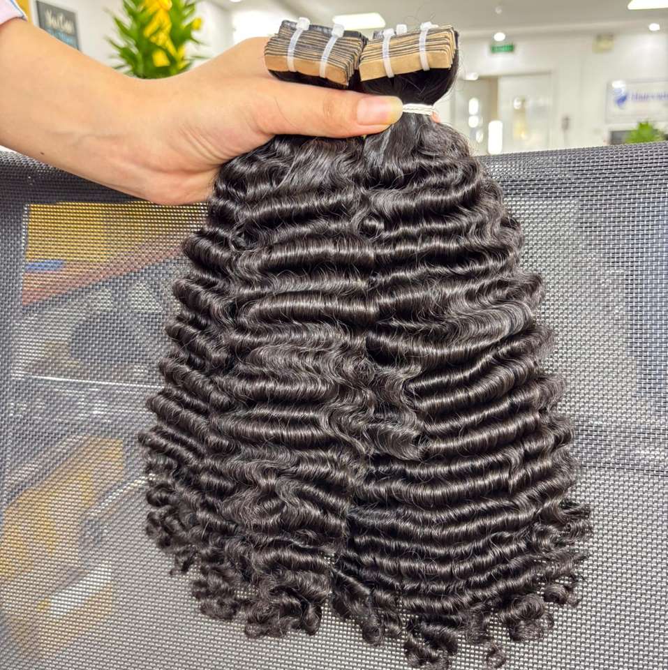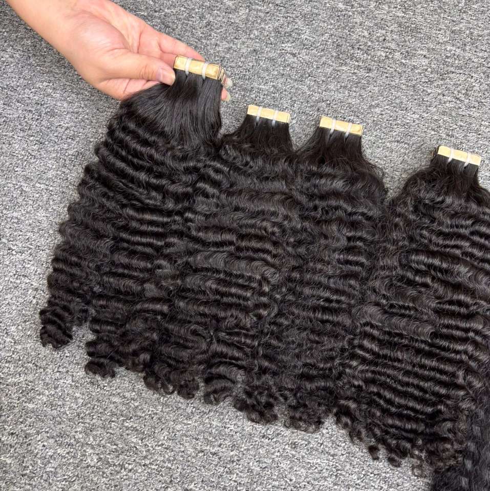 ผมต่อแบบเทปกาวสำหรับต่อผมมนุษย์ผมหยิกแบบชาวพม่าไม่ผ่านกระบวนการ100% เวียดนาม