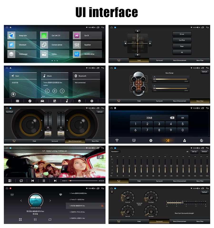 หน้าจอสัมผัส, MP3/MP4, DVD / VCD, Photo Viewer, เครื่องรับวิทยุ, คาร์เพลย์, Mirror Link, Android Auto, Build-In DSP, อื่นๆ, ชาร์จในรถยนต์, รีโมทคอนโทรล, เครื่องขยายเสียง, 3Dแผนที่, กล้องสำรอง, คำแนะนำด้วยเสียง, พวงมาลัยควบคุมล้อ, หน้าจอแยก, แผนที่Planning, Torque Pro, ย้อนกลับAid, Liveที่จอดรถ, การจราจรสด, มัลติมีเดียรองรับ, Dual Modeระบบนำทาง, คำเตือนความเร็ว, เข็มทิศดิจิตอ, Build-Inไมโครโฟนฟังก์ชัน