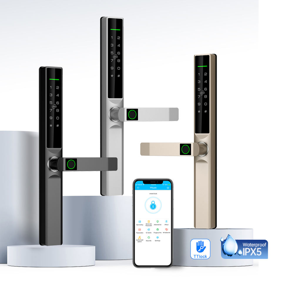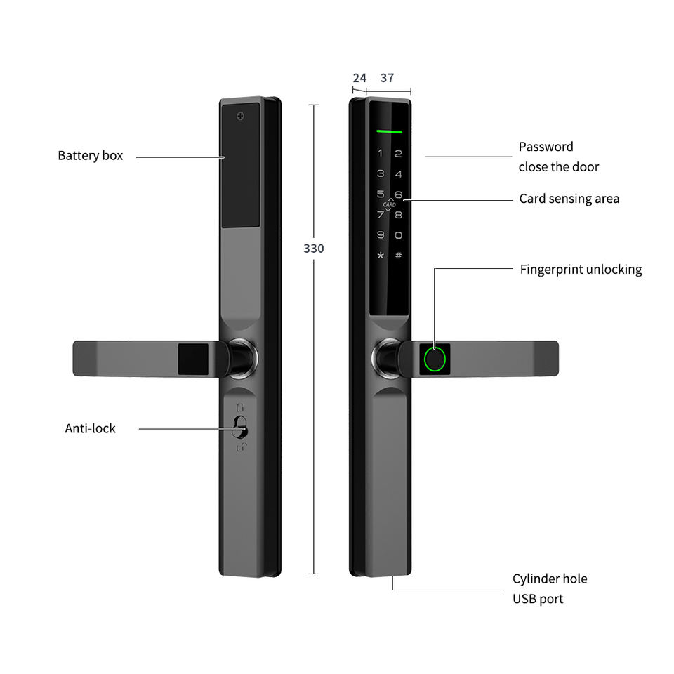 ล็อคอัจฉริยะประตูดิจิทัลอะลูมิเนียมกุญแจสแกนลายนิ้วมือ