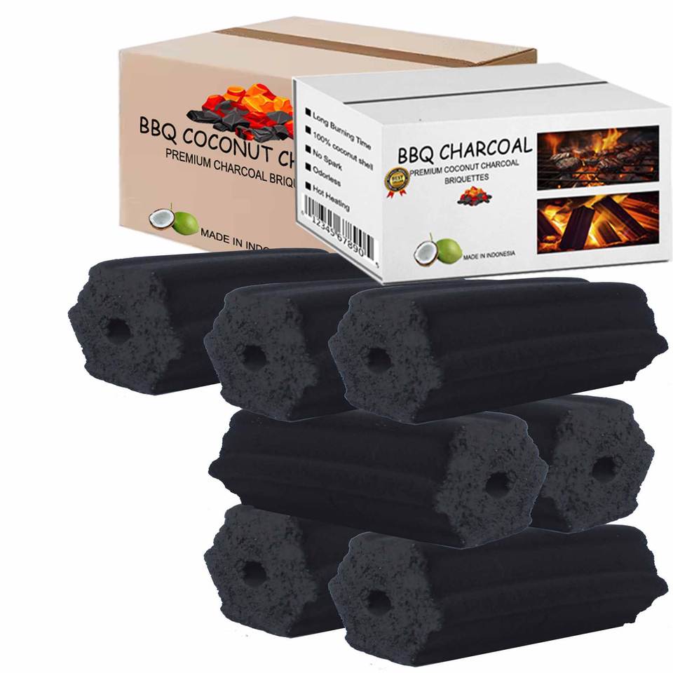 ถ่านก้อนบาบีคิวทรงหกเหลี่ยมสินค้าส่งออกแบบอินโดนีเซีย10กก. เถ้าต่ำทำจากเปลือกมะพร้าวธรรมชาติในยุโรป