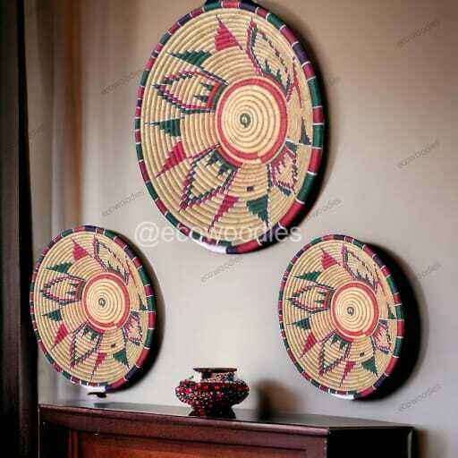ตะกร้าหวายสานแขวนผนังสำหรับตกแต่งผนังทรงกลมจากอินเดีย