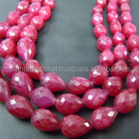 Factory Price Corundum Ruby Gemstone Faceted Briolette Tear Drop Loose Beads Red Grade AAA 8-10MM 8 Inches
