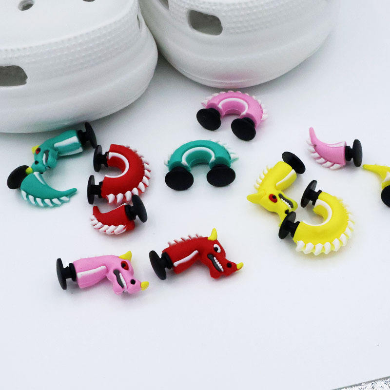 ยางอุปกรณ์เสริมรองเท้าสุดเท่สำหรับเด็ก3ชิ้น/เซ็ตงานตามสั่ง3D มังกรงูจระเข้พีวีซี