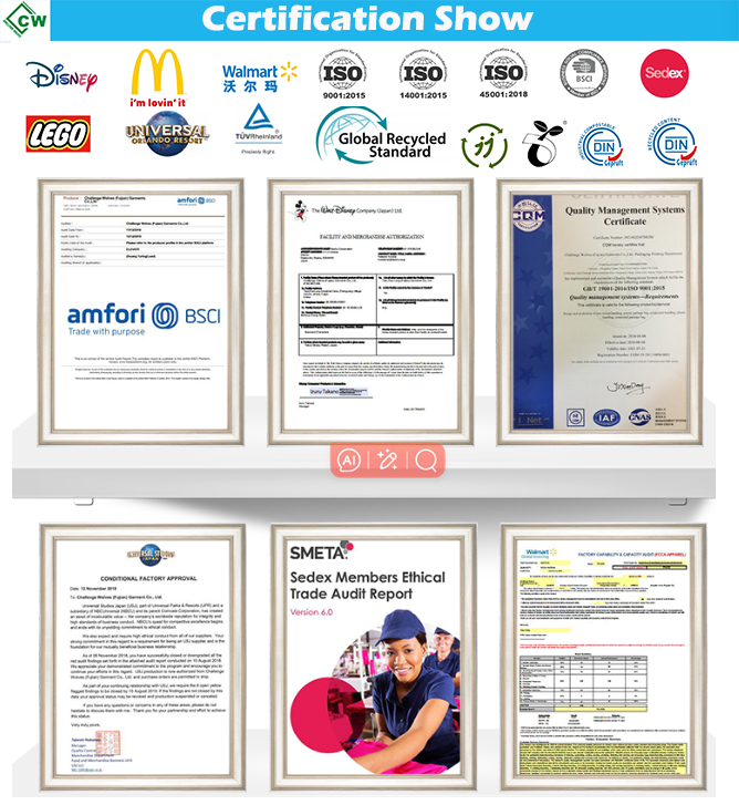 ใบรับรอง:ดิสนีย์/nbcu/walmart/mcdonald's /mars/lego /bsci/grs/sedex/din/iso