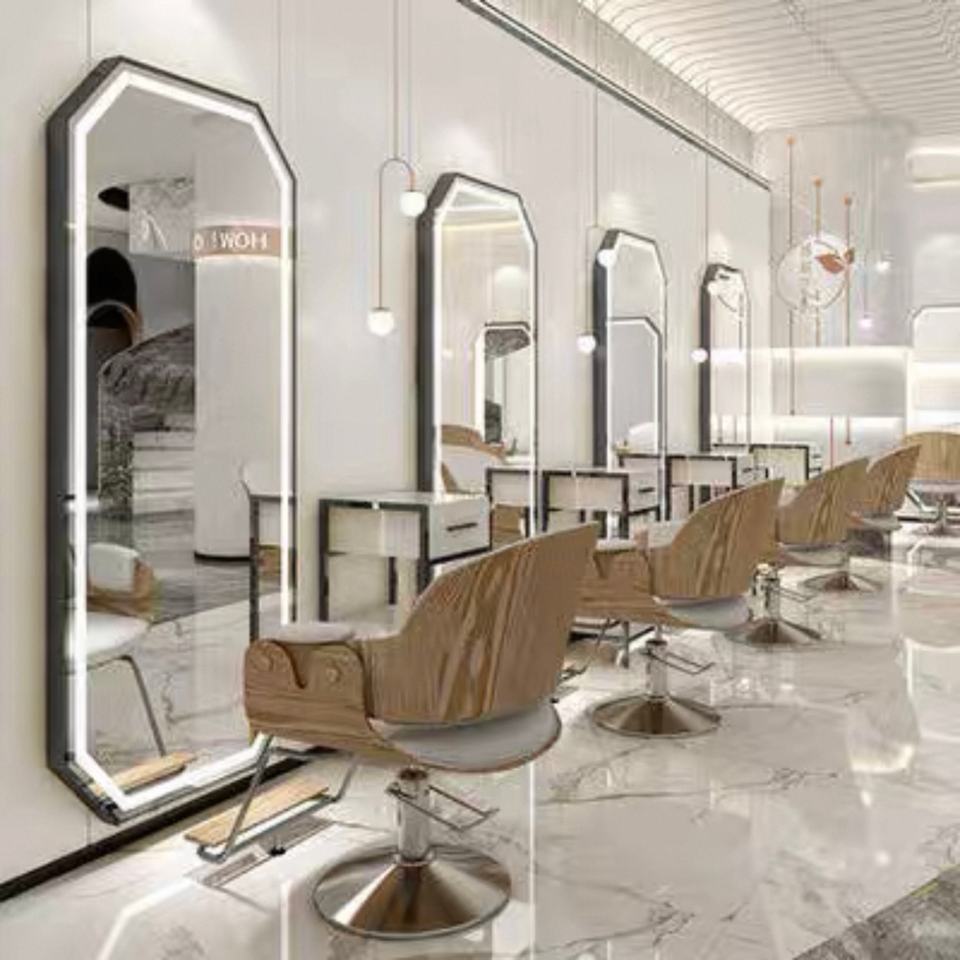 ชุดเฟอร์นิเจอร์ร้านทำผมทรงกระจกทรงรี/สี่เหลี่ยม ดีไซน์ทันสมัย หรูหรา ราคาโรงงาน รับออกแบบตามสั่ง
