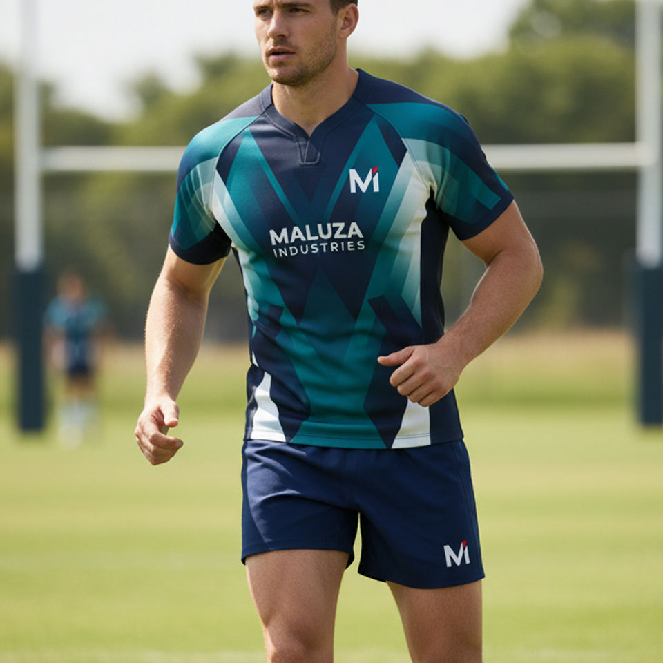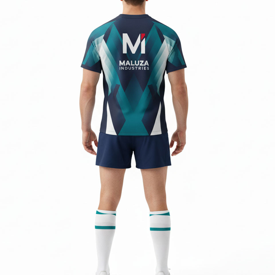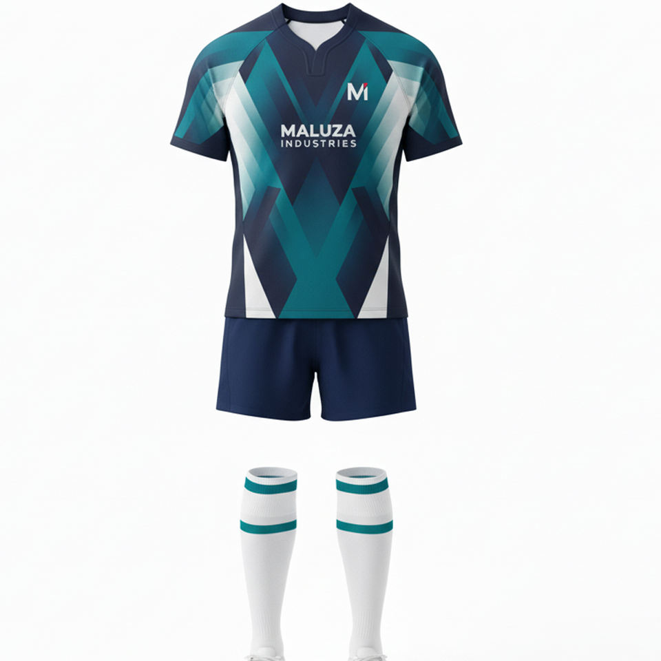 ชุดยูนิฟอร์มรักบี้พิมพ์ลายตามสั่งราคาโรงงาน ชุดเสื้อและกางเกงรักบี้สำหรับมืออาชีพ แห้งเร็ว ป้องกันแบคทีเรีย
