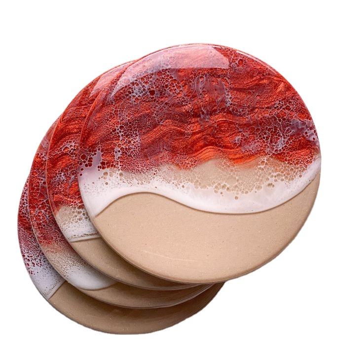 แผ่นรองจานลายคลื่นทะเลทำจากไม้เรซินพิมพ์ซับลิเมชันตามสั่งสำหรับรองแก้วบนโต๊ะสำหรับตกแต่งบ้านแผ่นไม้ก๊อกห้องครัว