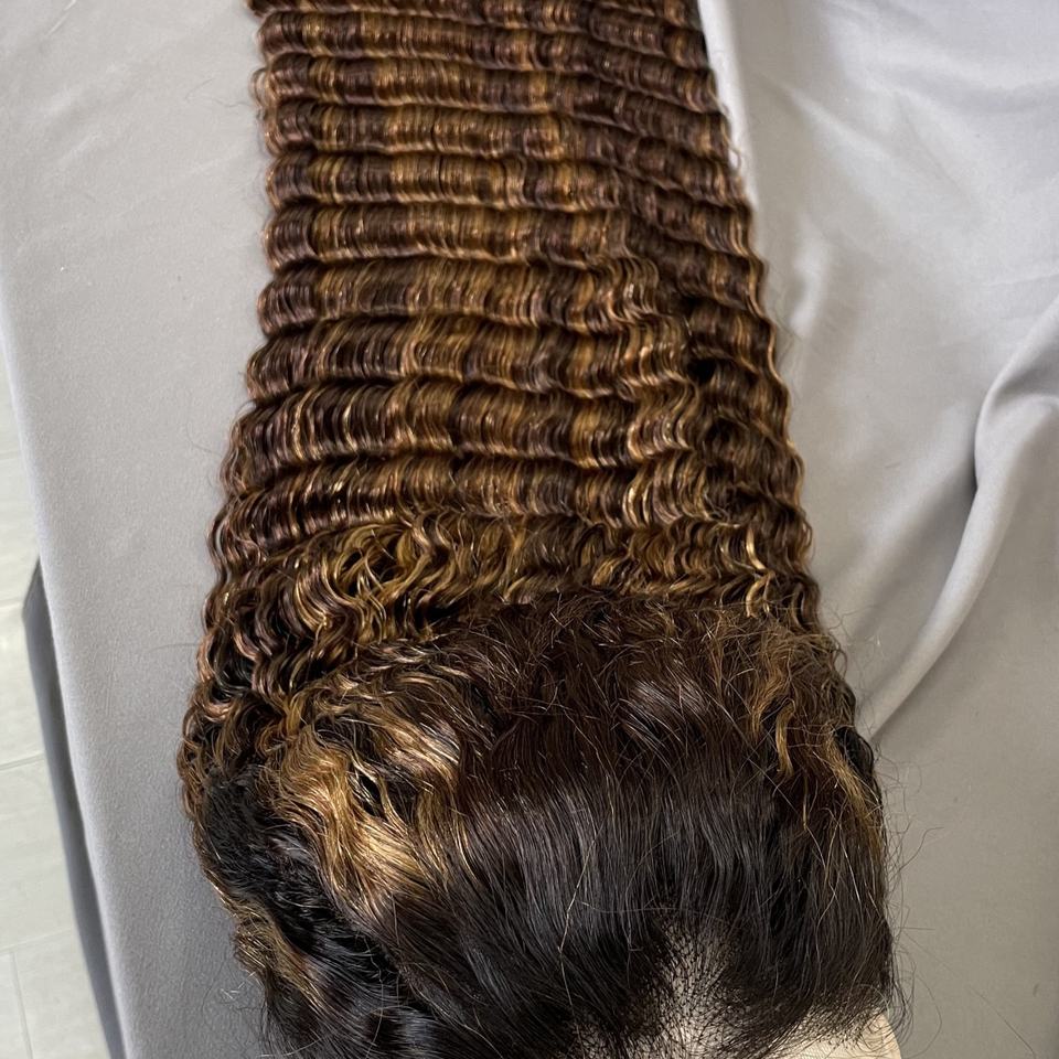 วิกผมแท้บราซิล Remy แบบโปร่งใส ไฮไลท์สีธรรมชาติ ความหนาแน่น 180% พร้อมเชือกผูกด้านหน้า ราคาโรงงาน ขายดี