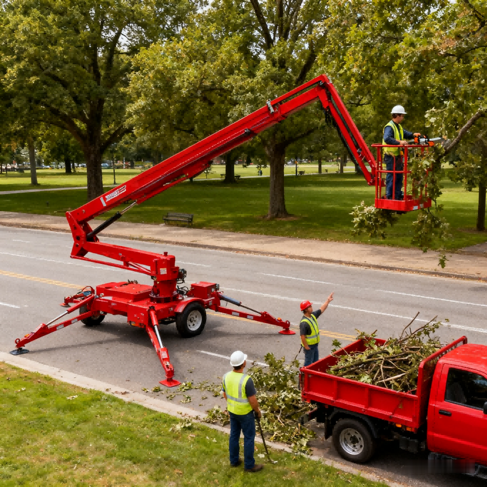 รถยกบูมลิฟต์ยกไฟฟ้าหรือดีเซลรถบูมลิฟท์ติดรถพ่วงแบบไฮดรอลิก