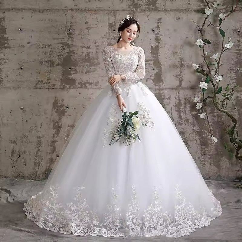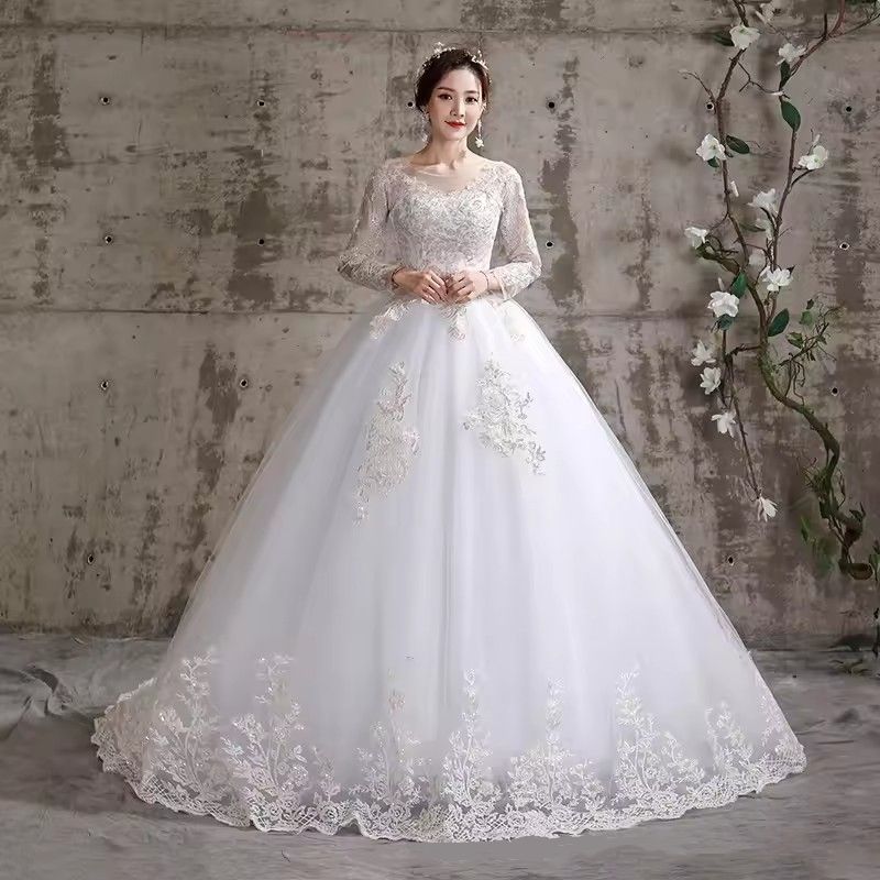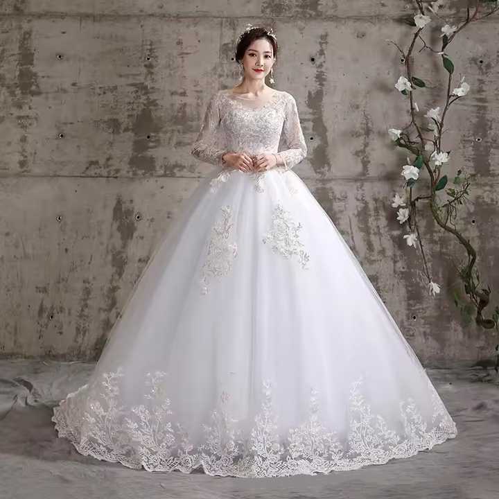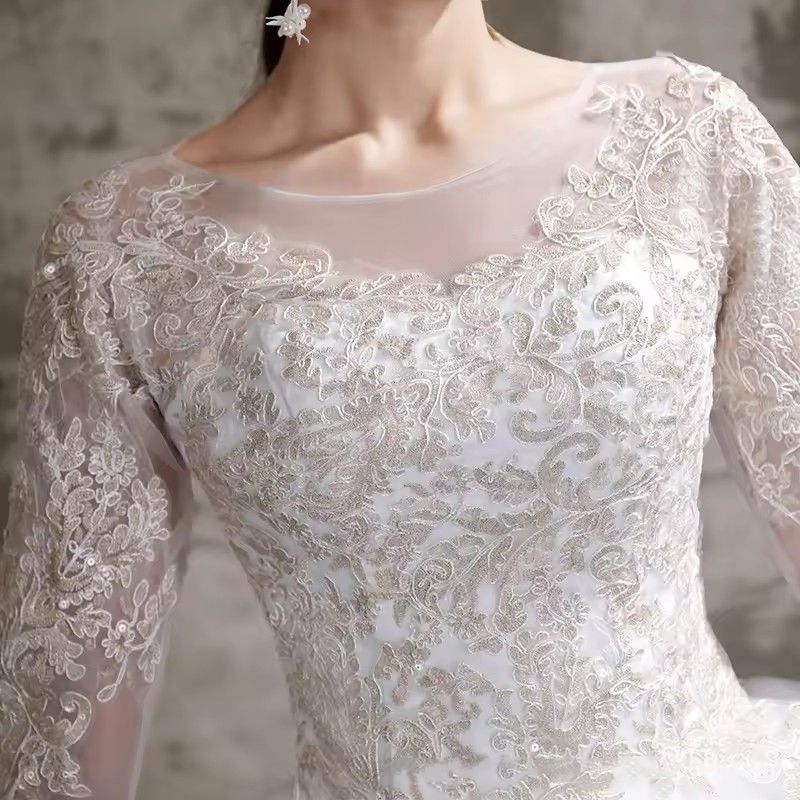 ชุดเจ้าสาวแขนยาวสำหรับผู้หญิงชุดเดรสยาวปักลูกไม้สำหรับ2023