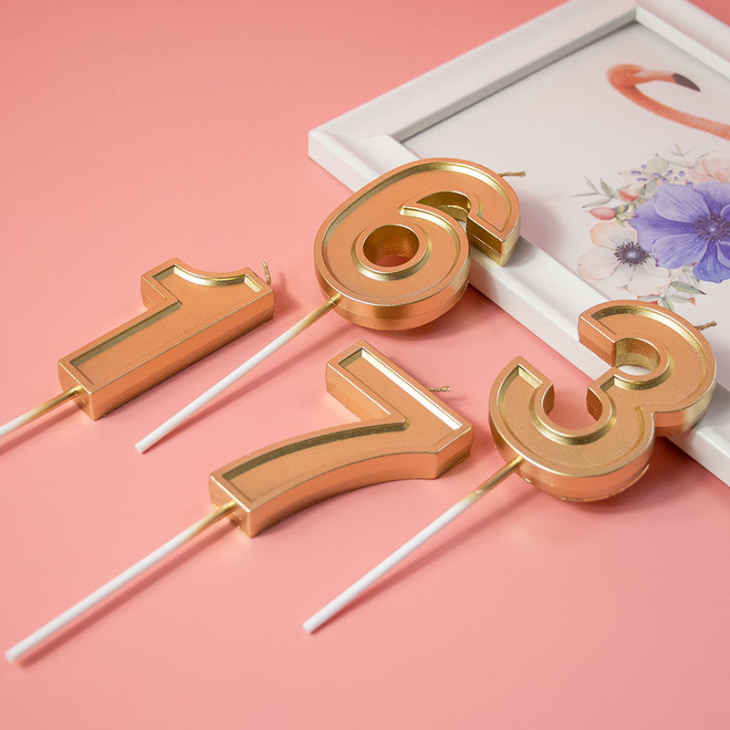 เทียนวันเกิดโลหะสีทองหรูหราสำหรับงานแต่งงานและงานเลี้ยง