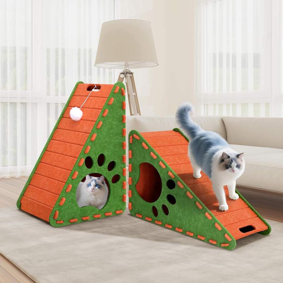 เตียงแมวพับได้ราคาโรงงาน, บ้านแมวเก็บเสียงพรีเมียมจากผ้าสักหลาด ปรับแต่งได้สำหรับพื้นที่ขนาดเล็กและระเบียง
